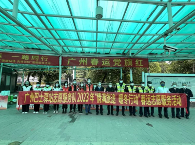 2023年1月10日下午,公交站场管理公司在广州火车站(草暖公园)公交站场开展2023年“幸福春运 一路同行”暨“情满旅途 暖冬行动”春运志愿服务活动,党员代表及志愿者们在站内开展文明安全出行宣传和春运温馨志愿服务活动。