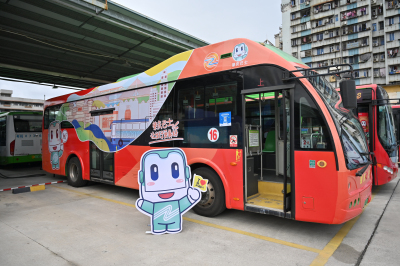 肇庆巴士吉祥物“庆小巴”和新的主题公交车。西江日报记者 岑永龙 摄