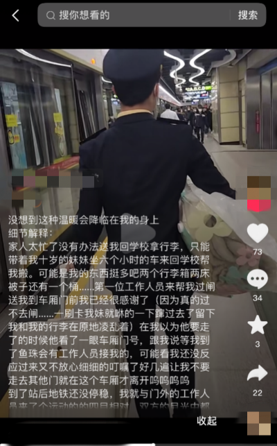 日前,一名乘客发视频感谢车站工作人员的帮助,这里面有什么暖心的故事呢?