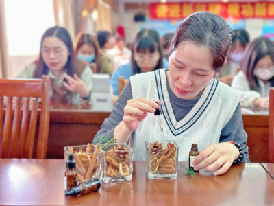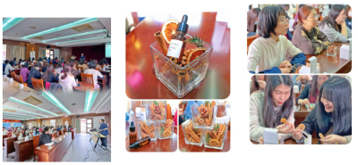 本次活动邀请到佛山花艺协会会员Lisa老师为大家教学。老师首先介绍了香薰精油的概念、类型以及应用于生活保健的小知识,带领大家学习芳香疗愈方法,感受植物精油的芳香,通过吸嗅或透过皮肤吸收的方式,实现减压放松、舒缓疲劳,女职工将精油滴在手心,切身感受精油在嗅觉、触觉上带来的心灵疗愈力量。