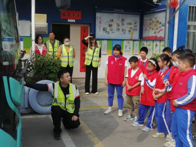 大家兴致勃勃积极参与,除了充当“驾驶员”的同学外,其他同学纷纷在车辆周围充当“盲区物体”。