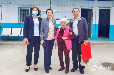 车队党支部副书记付恒陪在老人身边