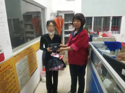 (张女士从工作人员手中领回拎包)