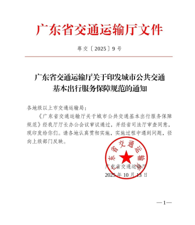 广东省交通运输厅关于印发城市公共交通基本出行服务保障规范的通知