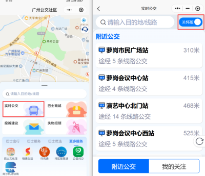 智慧出行更便捷。除了线下服务的精细化,巴士集团也将适老理念延伸至线上场景。在“广州公交社区”平台推出实时公交查询“关怀版”模式,该模式以“简洁界面+大字体”为设计核心,切实缓解了老年群体阅读小屏幕的困扰,让智能手机成为长者便捷查询的“暖心工具”,实现了智慧出行与适老服务深度融合。
