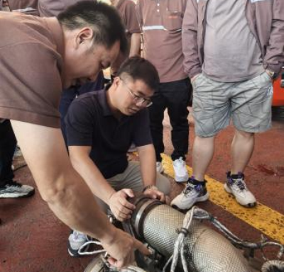 古云峰老师在后处理传感器故障诊断课程中,现场演示尿素喷嘴的检测方法,指导学员进行NOx传感器的实际测量。学员们围绕实训车辆,通过亲手操作掌握诊断要领。