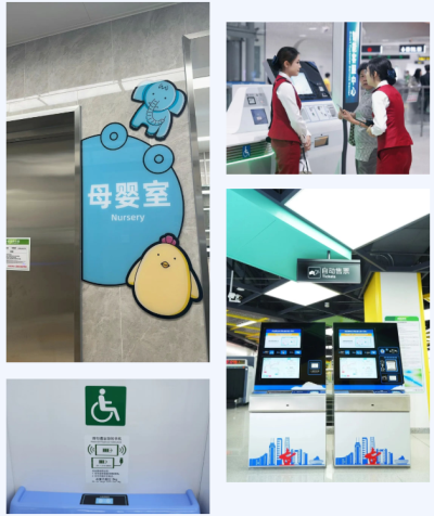 车厢内设有无线充电区与USB接口,车门上方动态显示屏清晰显示换乘信息与车厢编号,出行指引一目了然。中心广场站更配备智慧安检、智能客服等设施,无障碍电梯、母婴室及“爱心预约”服务,营造全龄友好的乘车环境。