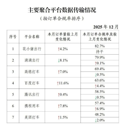 据网约车监管信息交互系统监测,截至2025年12月31日,全国共有395家网约车平台公司取得网约车平台经营许可,较上月增加1家。网约车监管信息交互系统12月份共收到订单信息9.63亿单。从本月情况看,有以下特点: