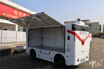 当天,中山市首批功能型无人物流车正式上线运行,4条示范线路同步开通,总里程22.4公里,标志着中山智能物流新业态正式落地。