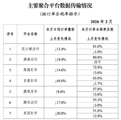 据网约车监管信息交互系统监测,截至2026年2月28日,全国共有396家网约车平台公司取得网约车平台经营许可,与上月持平。网约车监管信息交互系统2月份共收到订单信息7.65亿单。从本月情况看,有以下特点: