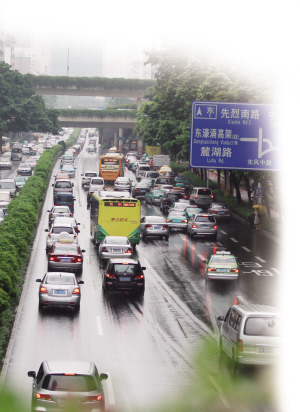 在宏城广场门前至体育东路口之间的天河路上,每天都要经历在不足150米的路程内,多趟公交车一连斜穿6条车道,才能驶入BRT通道的“步步惊心”剧目。